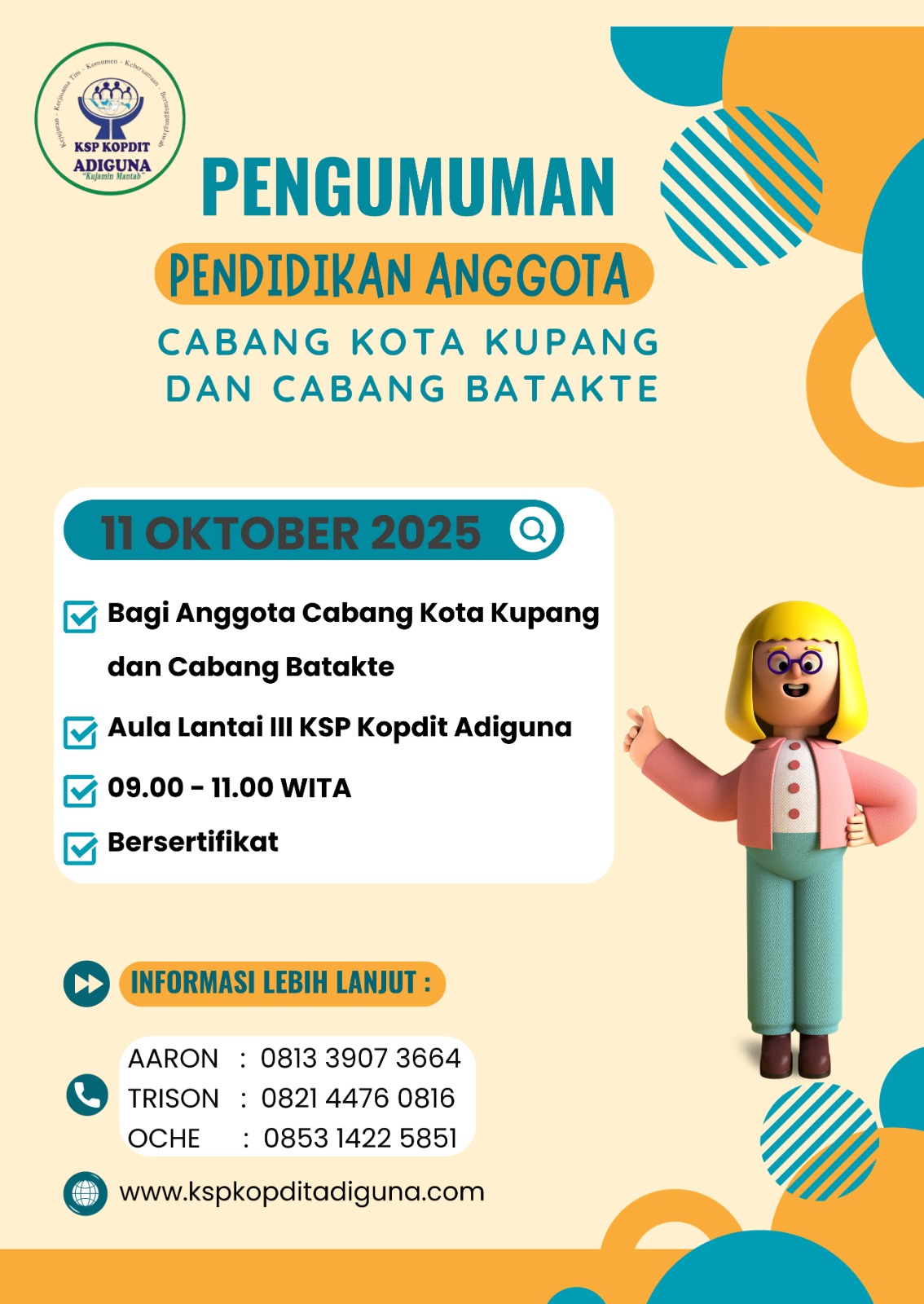 Karena itu, KSP Kopdit Adiguna mengundang seluruh anggota — baik yang baru bergabung maupun yang sudah lama — untuk mengikuti Pendidikan Dasar Perkoperasian.